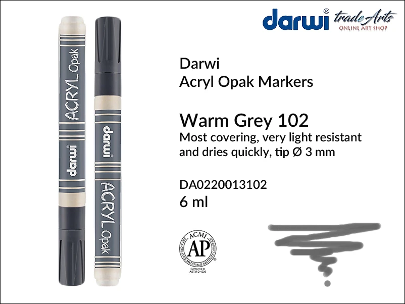 Pisak akrylowy, farba akrylowa kryjąca w pisaku Darwi Acryl Opak, kolor: Warm Grey 102