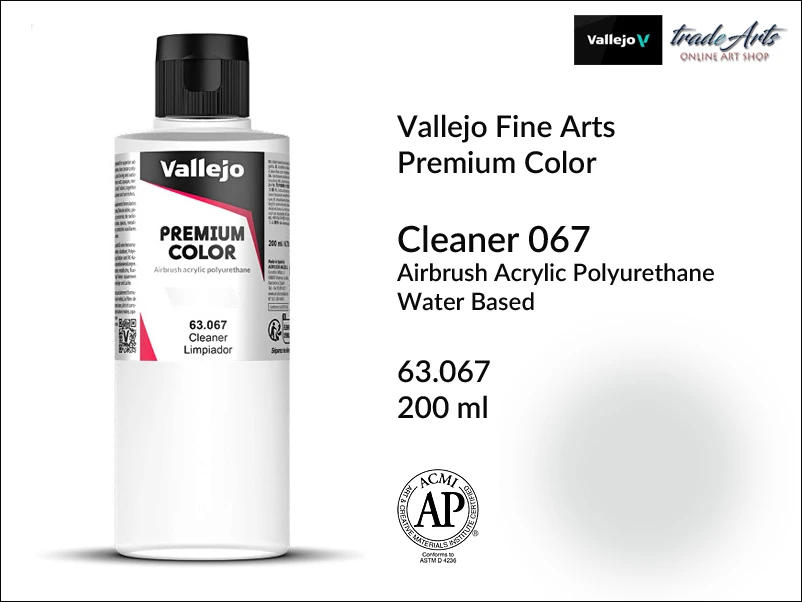 Płyn czyszczący aerografy między zmianami kolorów; usuwa pozostałości farby i jednocześnie konserwuje wnętrze pistoletu. Cleaner jest specjalnym detergentem zalecanym do czyszczenia dysz aerografów (zapobiega ich zatykaniu). Dokładne czyszczenie z zaschniętych farb wymaga umieszczenia części aerografu w środku czyszczących na 12 godzin. Opakowanie 200 ml.