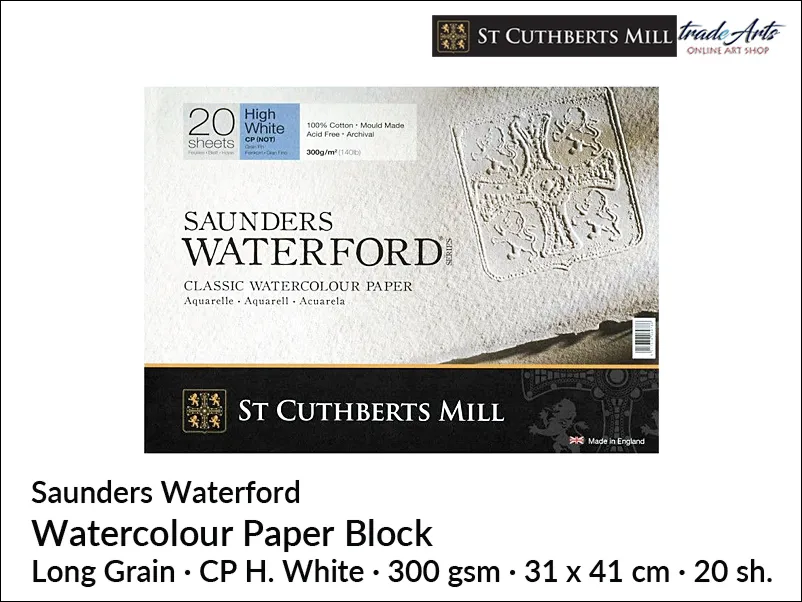 Saunders Waterford to najwyższej jakości, profesjonalny papier akwarelowy produkowany przez St Cuthberts Mill; posiada certyfikat Royal Watercolour Society.