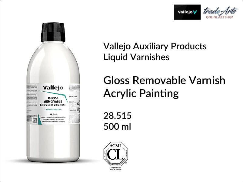 Najwyższej jakości, błyszczący akrylowy werniks odwracalny, formuła 100 akrylu z odpornością na promieniowanie UV. Tworzy przezroczystą, błyszczącą i wodoodporną ochronną powłokę na pracach wykonanych akrylami. Nie powoduje zażółceń. Można stosować do malunków wykonanych akrylami na powierzchniach z kartonu, papieru, paper-mache, gipsu, drewna, ceramiki, metalu etc. Szybkoschnący. Doskonałe zastosowanie zarówno do ochrony prac artystycznych jak i rękodzielniczych i modelarskich. Nakładanie pędzelkiem.