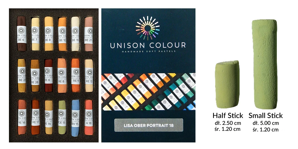 Zestaw Lisa Ober Portrait 18 Small Stick Soft Pastel Set zawiera osiemnaście pasteli wielkości small stick - kolory specjalnie wyselekcjonowane przez Lisę Ober do malowania portretów. Ten zestaw zawiera kolory z ekskluzywnej gamy pasteli portretowych. Zostały one specjalnie opracowane dla wymagających portrecistów. Miękkie pastele Unison Color zapewniają łatwość użycia dzięki bardzo łatwej w mieszaniu konsystencji.
