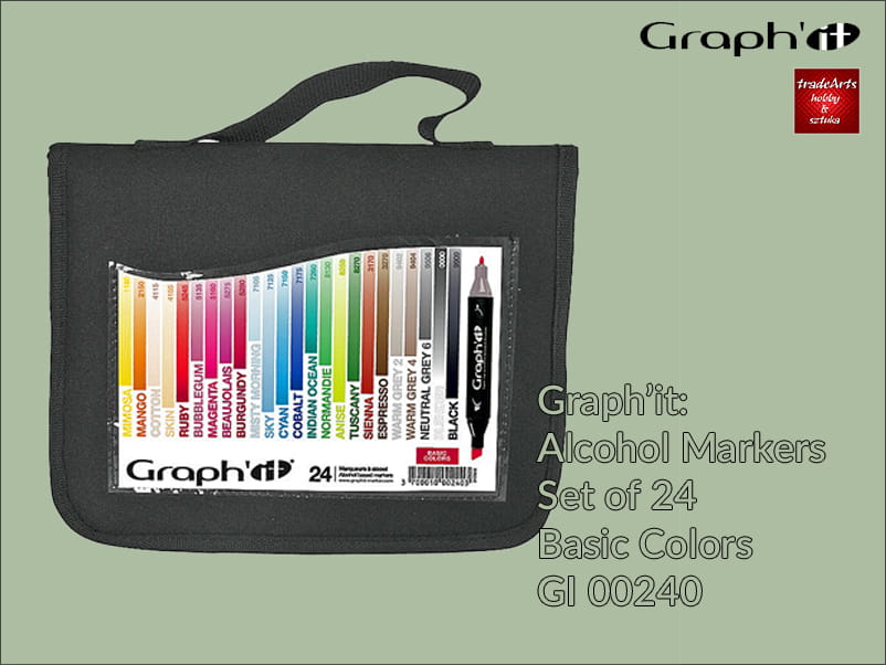 Zestaw markerów alkoholowych Graph'IT: Basic Colors - 24 szt. w etui z tkaniny